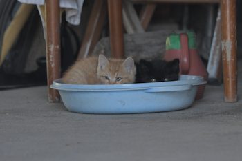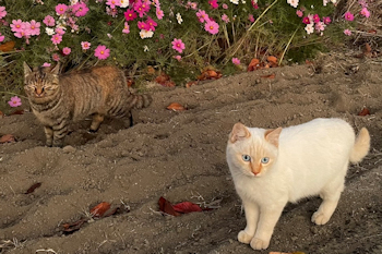 | 今はこの花が盛り | この2匹は母と子らしい 白いのが子猫 |