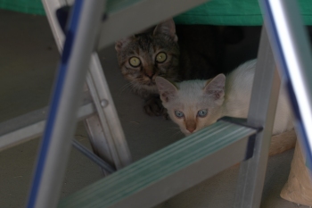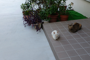 今はこの花が盛り | この2匹は母と子らしい 白いのが子猫 |