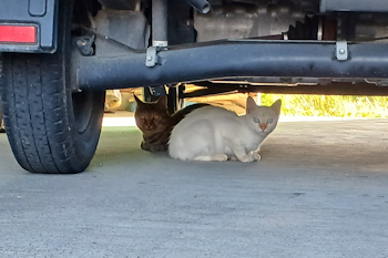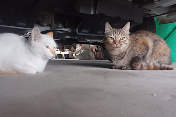 今朝もオイラの車の下で ウチにやってくる時間帯があるみたい |