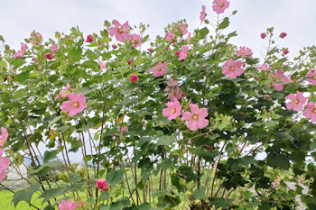 ウチの畑兼花壇 ソラマメとコスモス コスモスはこの風で終わってしまいそう・・・ |