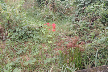 野鳥園東観察舎前のヒガンバナ 手前が枯れると奥が咲き始めた |