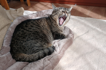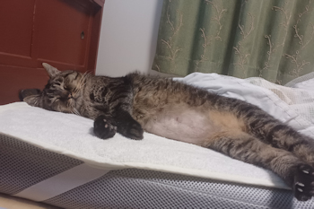 | 令和6年11月29日 土曜日 最近の”まっき”はほとんど寝たきり。 と言っても人間さんの”寝たきり”とは違います。 きちんと家の中で一番快適に寝られる場所を探しています。 要するに贅沢な寝たきり生活です。 寒空のもと日々を過ごすコイツらとは大違いです〜。 |