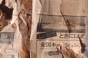 フスマの裏張りには懐かしい写真 昭和48年の新聞です フェリーも懐かしい |