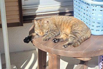 | ムギチャは洗濯干し場で日向ぼっこ お前さんの子シロチャは元気だそうだよ |