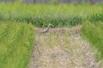 令和7年9月29日 月曜日 今年は住宅から距離のある田んぼ1枚を隔条耕運※しています。ナベヅルのための二番穂を残しておくためですが、耕すのが面倒くさいということもあります。今日はその田んぼにホウロクシギがやってきました。獲物はやっぱりバッタ。 さぁて・・・今年は来るかなナベヅル。早い時は10月初めにやって来たことがあります。 ※私の造語です |
