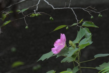 | 芙蓉の花とムクの実 東観察路沿いで | イタチ 東観察舎すぐ前に現れ、こちらをじっと見てた |