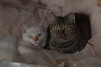 ムギチャとシロチャの親子 シロチャ今日はごめん。仕切り直しだな。 |