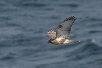 | 海上低く飛んできたノスリ | 東からということは・・・引き返しか? 出て行くのはいずれも高かった |