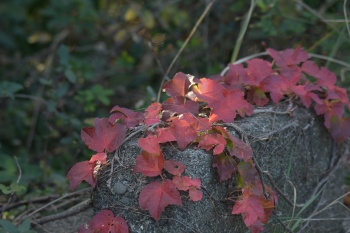 | 旧堤防のツルウメモドキ | 旧堤防にて ツタの紅葉 |