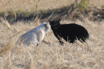 | ありゃー入ってました | 田んぼでオヤジロウと黒猫がにらみあい この後、どうなったのかなぁ? |