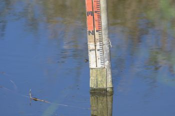 今朝の水位標柱の状態 | 目盛りが見にくかったので清掃しました |