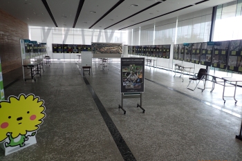 阿南市役所の野鳥写真展会場の様子 昨日、準備が終わったところで撮影したもの |