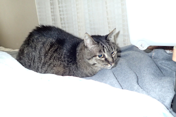 朝、寝床の横にやってきた”まっき” |
