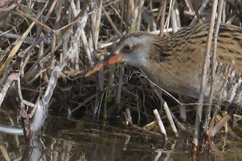 | 3月17日 東観察舎より撮影 クイナ いつの間にヒメガマが伸びています |