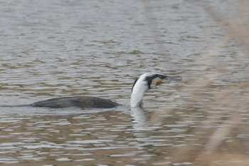 | 泳ぎだした | すっかり繁殖羽のカワウ |