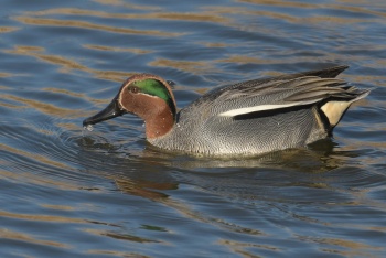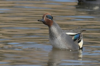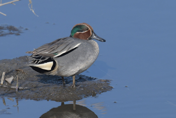 | 3月16日 中観察舎より撮影 コガモ雌雄 | 3月16日 中観察舎より撮影 コガモ雄 |
