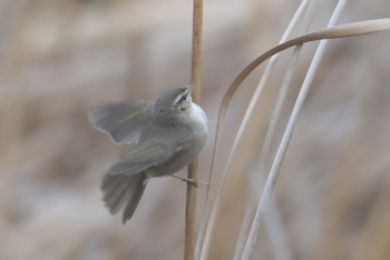 | 眉斑の特徴もムジセッカ | 尾羽はウグイスに比べて幅広く見える |