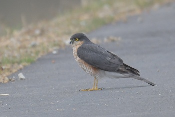 | 2026年1月26日 曇り ボランティア維持作業の前に訪れた東観察舎。 向かいの林沿いから飛び立ち、枝にとまったハト大の鳥。 チェックするとハイタカでした。それも雄の成鳥。 最近、小さめのハイタカをよく目にするようになっていたが、このハイタカだったか。 維持作業中にもハイタカを見かけたがそちらはサイズが大きくて雌を思わせた。 シーズン前半に見かけたハイタカはほとんど幼鳥っぽい個体だったが今はあまり目にしない。 どうなったのだろう。 |