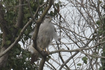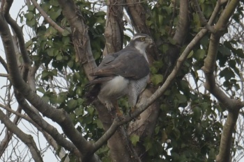 | 2026年2月1日 晴れ時々曇り 今朝は園内にオオタカ成鳥2羽がやってきて鳴き声も聞けたらしい。 園の外でも多数のハシボソガラスにまとわれたオオタカ幼鳥の姿を見かけた。 今、園内ではほとんどカモ類の姿がない。なのになぜやってくる? 今日の撮影画像はお昼近くになって飛来したハイタカ雄成鳥。 |