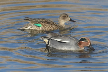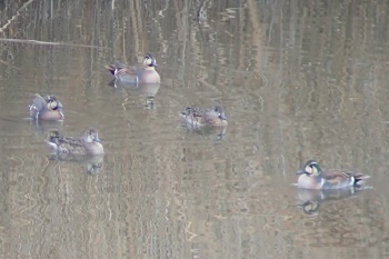 | エノキで採餌中のコムクドリ♀ 以上旧堤防にて | コガモとシマアジ 東観察舎より |