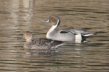 | 3月17日 中観察舎より オナガガモ雌雄 | 3月17日 中観察舎より ホシハジロ雌雄 |